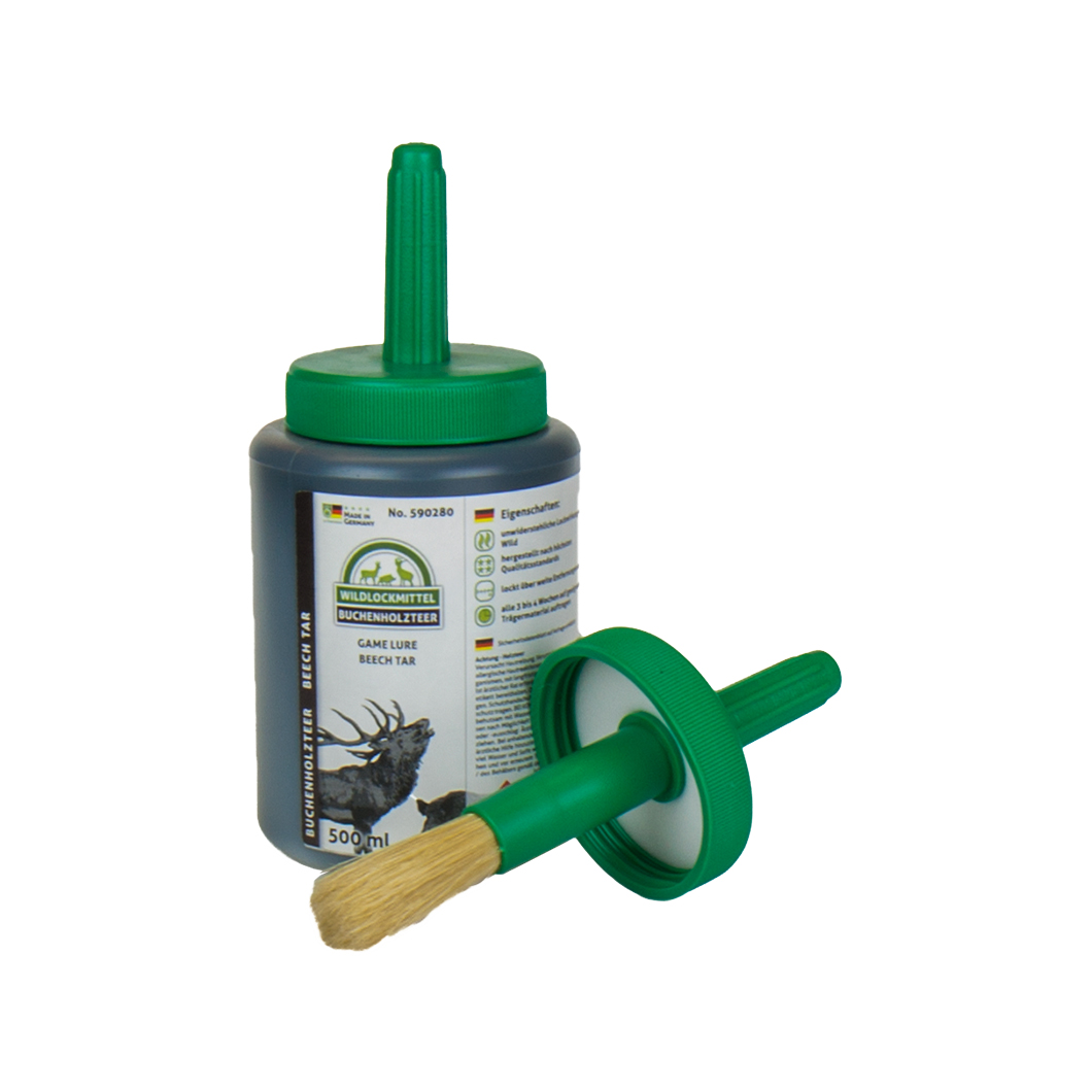 Eurohunt katran od bukve je 100% prirodan proizvod bez dodataka i feromona, izrađen dvostrukim kuhanjem bukovog drveta radi postizanja najveće čistoće i mirisne postojanosti. Zahvaljujući srednje gustoj teksturi, jednostavan je za nanošenje, a praktična ugrađena četka omogućava ravnomjerno premazivanje stabala i mjesta za prihranu.