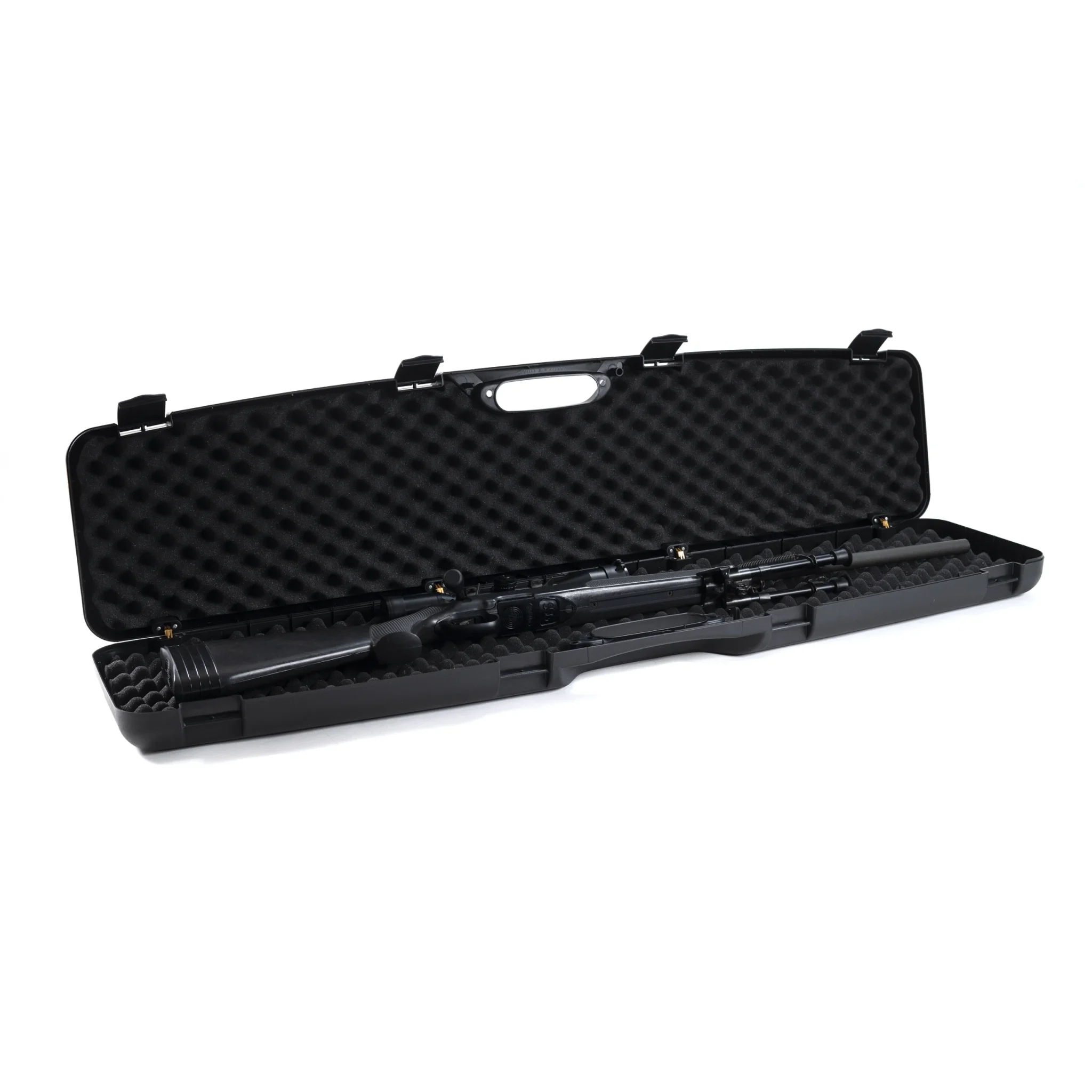 Robusna i elegantna futrola za pušku ili karabin, dizajnirana da pruži maksimalnu zaštitu tokom transporta i skladištenja. Tvrda konstrukcija od kvalitetnog polipropilena otporna je na udarce i habanje, dok unutrašnjost obložena reljefnom spužvom sigurno fiksira oružje i ublažava vibracije. Četiri čvrste kopče osiguravaju pouzdano zatvaranje, a kompaktan, moderan crni izgled čini futrolu praktičnom i profesionalnom za lov, sport i transport.