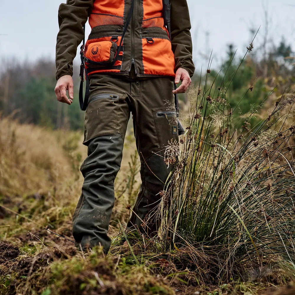 Forest Hunter Pro GTX pantalone izrađene su za lovce koji traže maksimalne performanse u zahtjevnim šumskim i brdskim uslovima. U njihovoj jezgri nalazi se vjetrootporna i vodonepropusna GORE-TEX® membrana, koja pruža potpunu zaštitu od nepredvidivih vremenskih prilika. Spoljašnji sloj od čvrstog, četkanog trikota sa DWR tretmanom odbija kišu i prljavštinu, dok trostruka konstrukcija s mekanom flanel podlogom daje toplinu, udobnost i izdržljivost. Ojačanja Airtech tkaninom od koljena prema dole štite od trnja, kamenja i habanja, pa pantalone ostaju pouzdane i u najgrubljim terenima.