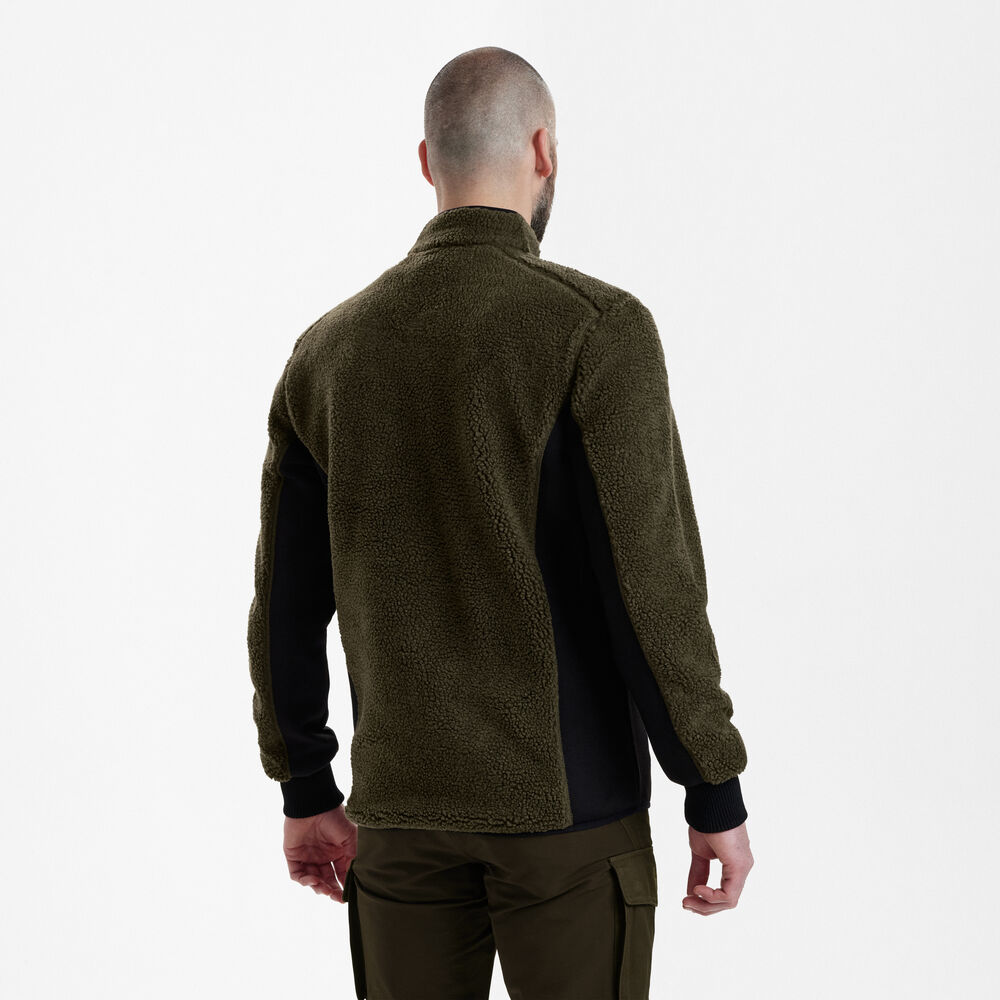 Ova jakna napravljena je od mekane i tihe pile tkanine s podstavom, što je čini idealnom za hladne dane i aktivnosti gdje je nečujnost važna. Kombinacija fleeca i elastičnih materijala pruža odličnu ravnotežu topline, udobnosti i slobode pokreta. Elastične završne trake na kragni, rajsferšlusu i donjem rubu doprinose dobrom pristajanju, dok rebraste manžetne sprječavaju ulazak hladnog zraka.