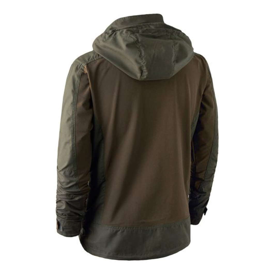 Deerhunter Strike Jakna izrađena je od naprednog četveroslojnog rastezljivog materijala koji omogućava maksimalnu slobodu pokreta i izuzetnu udobnost. Ojačanja na laktovima povećavaju izdržljivost, dok Teflon® premaz štiti od kiše, prljavštine i vlage, čineći jaknu idealnom za hladno i promjenjivo vrijeme. Dizajnirana za aktivan lov, nudi praktičnost kroz dva velika bočna džepa, prostran grudni džep te podesivu kapuljaču i manžete s čičak trakama. Strike jakna spaja funkcionalnost i zaštitu u elegantnom, robusnom izdanju.