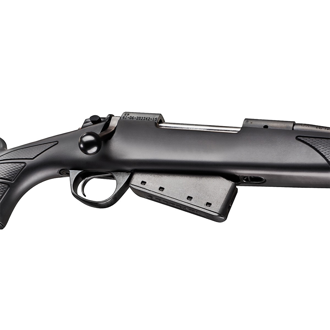 Bergara B14 Sporter u kalibru .308 WIN je karabin namijenjen strelcima i lovcima koji traže preciznost u kombinaciji sa svakodnevnom praktičnošću. Težina i balans prilagođeni su za udobno nišanjenje i brzo ponavljanje, dok profil cijevi 16,6 mm i button-rifled obrada doprinose konzistentnosti pogotka. Navoj na ustima cijevi M14×1 i dvopozicijska kočnica omogućuju jednostavnu ugradnju prigušivača ili kompenzatora i podešavanje povratne sile prema uvjetima. Solidna konstrukcija, kapacitet magacina 3+1 i ukupna dužina 107 cm čine B14 Sporter robusnim i spremnim za razne terenske zadatke.