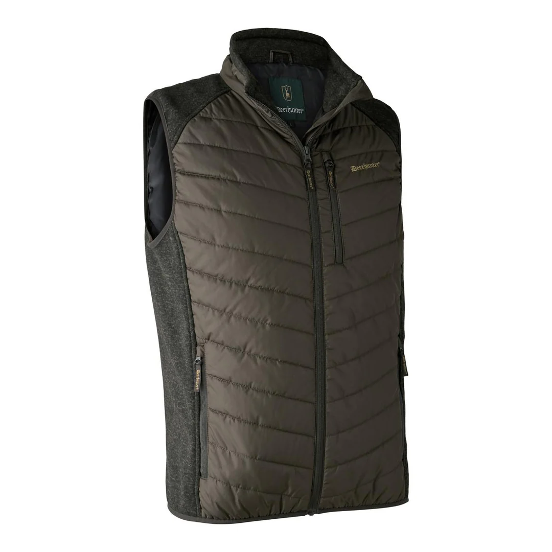 Deerhunter Moor prsluk kombinuje laganu toplinsku izolaciju s rastezljivim panelima na ramenima i bočnim stranama, što mu daje izuzetnu udobnost i prirodno pristajanje pri svakom pokretu. Mekani rubovi oko rukavnih otvora i donjeg dijela prsluka oblikuju čistu siluetu i omogućavaju da se prsluk nosi udobno preko majice, flisa ili tanke jakne.