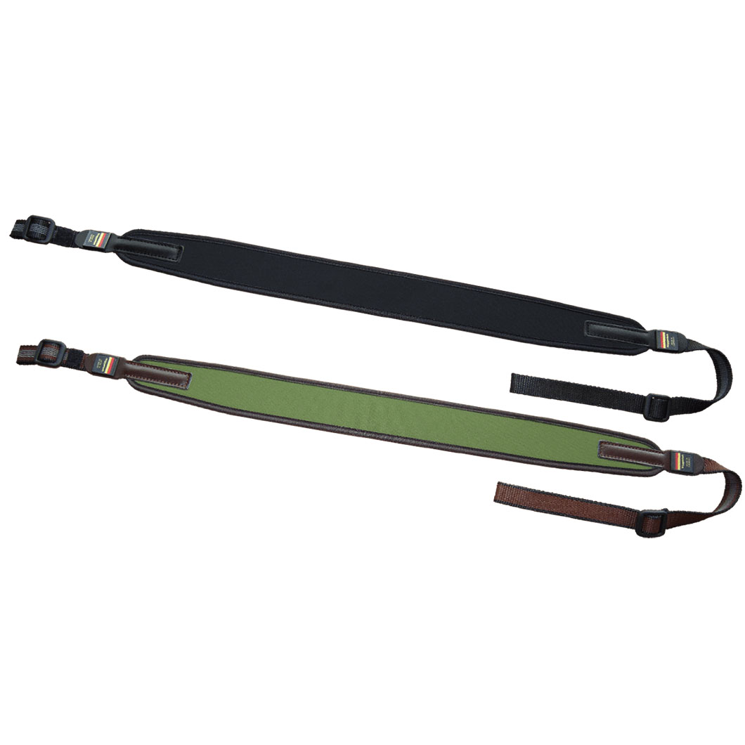 Širok i mekan neopren pruža izvanrednu udobnost, kontrolisano istezanje i maksimalnu apsorpciju trzaja. Protuklizna podloga na donjoj strani osigurava da remnik čvrsto stoji na ramenu bez klizanja.